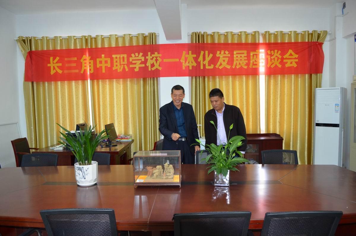 霍邱工业学校副校长徐孝才对职业教育中发展特色专业以及对传统非遗文化传承方面进行了较为深入的探讨,并实地考察了泥塑非遗展览室、张玉柱剪纸与撕纸非遗展览室、徐孝才德育名师工作室等。
