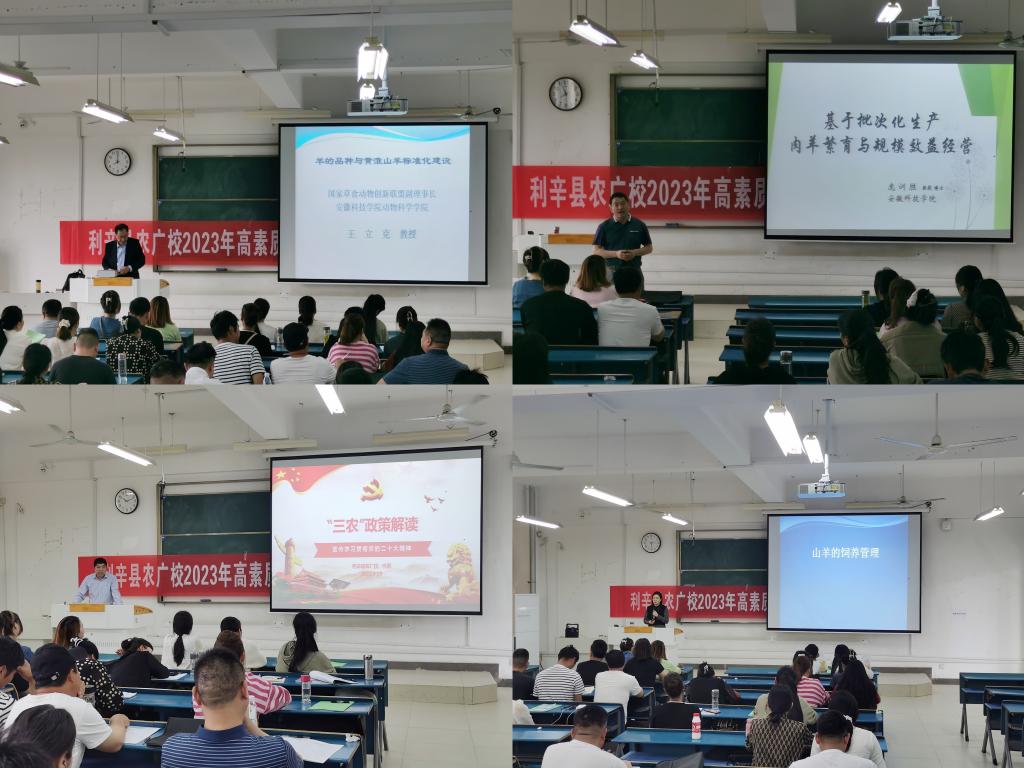 为了培养造就一批综合素质高、经营管理能力强、养殖技术过硬的黄淮山羊养殖专业家庭农场主,示范引领广大农民发展黄淮山羊养殖,发展地方优势农产品品牌,带动农民增收致富,促进农业扶贫产业转型升级、农村面貌的持续改变、农民素质不断提高,4月17日至19日,2023年利辛县高素质农民黄淮山羊养殖专业培训班在必一体育平台_必一体育平台(中国)股份有限公司第一报告厅开班,继续教育学院党支部书记、院长杨维来,利辛县农广校副校长李明,利辛县农广校工作人员、村干部、养殖合作社成员共60余人参加了开班典礼。