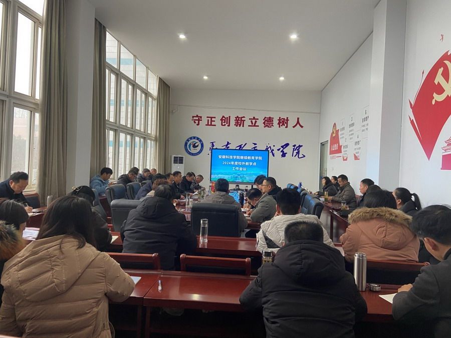 李忠首先带领大家回顾总结了2023年我校学历继续教育各项工作的开展情况,充分肯定了2023年度各校外教学点在学历继续教育招生、教学管理、学生管理等方面做出的贡献。随后,结合国家教育部、安徽省教育厅关于严格规范高等学历继续教育校外教学点设置与管理工作的相关政策精神,提出对我校学历继续教育今后工作的总体要求:育人为本、规范办学、提升质量。最后,他从2024级新生入学报到缴费、线下面授、学生网上学习督促、学士学位外语考试及学位论文指导及答辩、毕业生档案整理、毕业生费用结算等几个方面对2024年度学历继续教育工作做了全面地部署和安排,要求大家进一步统一思想,明确工作目标,规范高效地开展学历继续教育,保证学校和教学点工作有序开展。