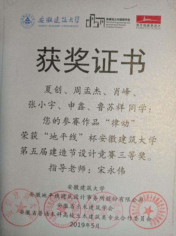 “匠”源于《周礼考工记》,“艺”取自《周礼天官》。“匠艺之星”即建筑学院学生中,勤学之典范、匠作之俊秀、设计之经纶。选树此典型,旨在“定方向、共分享、齐进步”,在以精益求精为内核的工匠精神熏陶下,以标杆效应激发莘莘学子热学专业之情志、精于创作之热情、乐于实践之追求。夏创,男,安徽安庆人,建筑学院17级学生,曾获安徽省“地平线杯”三等奖、安徽省BIM比赛三等奖、校优团、校优干、大学生排球联赛冠军,亚军、校启航杯足球赛冠军,亚军等等。