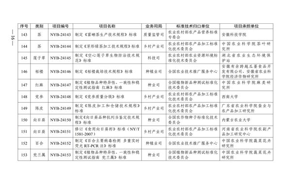 近日,农业农村部农产品质量安全监管司下达了2024年农业国家和行业标准制修订项目计划的通知(农质标函〔2024〕71号),我校尹雪斌教授团队申报的“制定《富硒茶生产技术规程》标准”项目(编号:NYB-24143)获批立项,这是我校首次获批农业农村部功能农业行业标准制定项目立项。