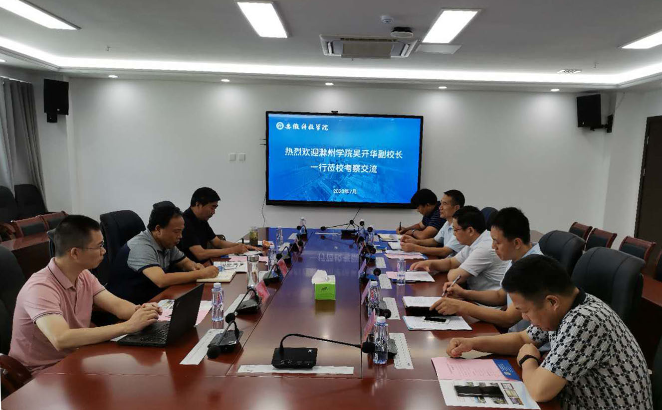 7月28日上午,滁州学院党委常委、副校长吴开华一行来我校考察交流消防可视化和门禁收费系统建设工作。校党委委员、副校长黄远友,龙湖校区综合管理办公室、网络与信息技术中心、保卫处、后勤保障等部门负责人在龙湖校区综合信息楼会议室与考察组进行深入交流。