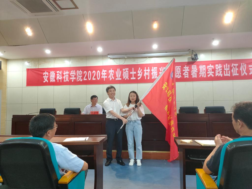 蒋德勤宣布必一体育平台_必一体育平台(中国)股份有限公司2020年农业硕士乡村振兴志愿者暑期实践活动正式启动,并为7支研究生志愿者实践团队授旗。同时,他对各实践团队提出了殷切希望,寄语了美好祝福。