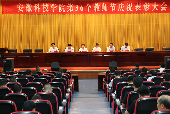 在全省上下深入学习贯彻习近平总书记考察安徽重要讲话精神的热潮中,在全校上下喜迎学校70华诞之际,9月10日下午,我校在新图书馆第二报告厅举行庆祝第三十六个教师节表彰大会。校党委书记蒋德勤出席大会并讲话,党委副书记、校长李震主持大会。党委副书记韦文联,党委委员、副校长黄远友,党委委员、纪委书记王强,党委委员、副校长李升和出席大会。