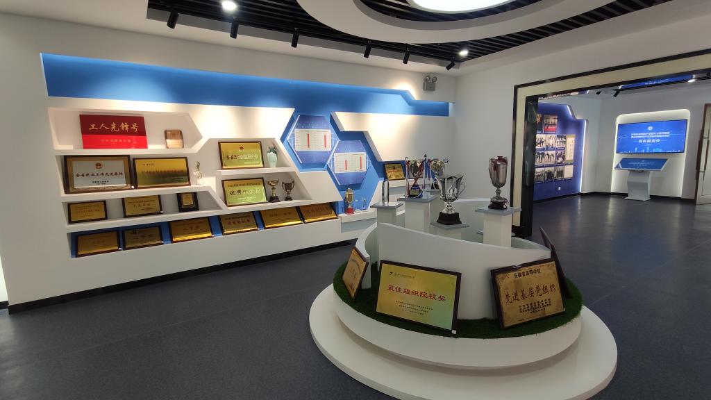 校史馆内还汇聚了大量的历史实物。这其中各个历史时期学校的办学史稿、有国家科技进步一等奖获得者黄世尧老校友的先进事迹报道原件,也有学校及广大教师、青年大学生荣获各级表彰奖励的证书、奖牌、奖章、奖杯,还有不同历史时期学校的老物件、图书馆馆藏图书以及科技创新成果实物展示等。校史馆还专题展示了学校第三次党代会描绘的“三步走”战略宏伟蓝图。这些对于师生们了解过去、把握现在、创造未来具有十分重要的意义。
