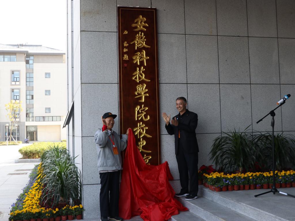 在热烈的掌声中,李光辉和刘正为校史馆揭牌。