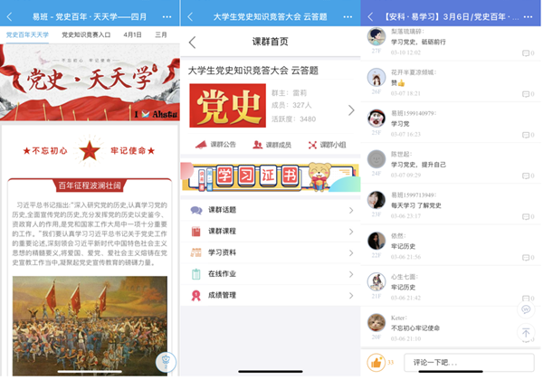 易班打造“云课堂”,党史学习“不打烊”,旨在发挥网络思政的优势,引导广大学生做到学史明理、学史增信、学史崇德、学史力行,让学党史、悟思想、办实事、开新局的精气神带给更多安科人迈进新征程、奋进新时代的力量。同学们反响强烈,纷纷表示作为新时代的青年马克思主义学习者、研究者和践行者,我们要扎扎实实修好中共党史这门“必修课”,更要在“学党史”的过程中自觉坚定“知党恩、听党话、跟党走”的崇高信念,做到知史爱党,知史爱国,不忘初心、牢记使命。(特约通讯员:石志成 审核:胡文靖 编辑:张威)