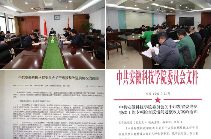 【综述】4月12日,学校召开巡视整改工作领导小组会议暨巡视整改工作推进会,总结前期整改工作,部署后期整改任务;4月19日,学校印发《关于组织召开处级党员领导干部中央巡视整改专题民主生活会的通知》,4月底前各二级党组织全部完成民主生活会各项任务,各处级领导干部主动认领责任,落实整改任务;4月24日,学校再次在校园网主页显著位置上挂《中共必一体育平台_必一体育平台(中国)股份有限公司委员会关于巡视整改进展情况的通报》,进一步向广大师生通报巡视整改进展情况;4月26日,学校召开省委巡视整改工作专项检查反馈问题整改动员会,从思想上再提升、行动上再聚力,做到宣传发动到位、思想认识到位,责任落实到位,问题整改到位,及时印发《中共必一体育平台_必一体育平台(中国)股份有限公司委员会关于印发省委巡视整改工作专项检查反馈问题整改方案的通知》;4月27日,学校印发《关于组织召开省委巡视整改工作专项检查反馈问题整改专题组织生活会的通知》,各党支部对标对表,党员干部把自己摆进去、把职责摆进去,把思想和行动统一到巡视整改工作中来,形成了全校整改工作“一盘棋”的格局,坚决把问题改到位、改彻底。
