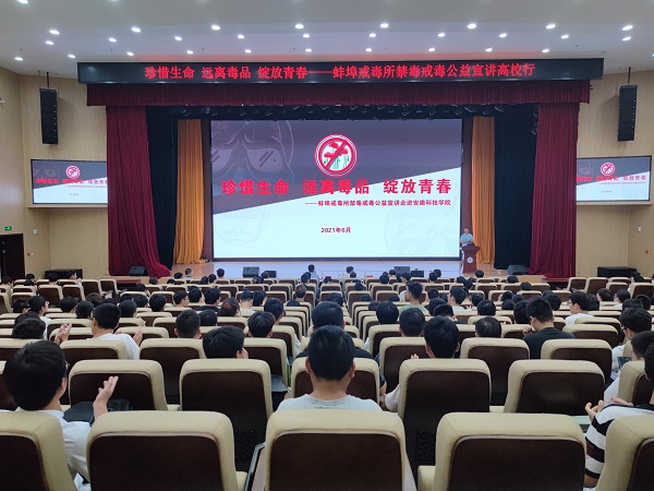 在“626国际禁毒日”临近之际,为面向在校青年大学生开展禁毒宣传教育,普及毒品预防知识,引导青年学生自觉抵制毒品,6月17日上午,蚌埠市戒毒所党委书记、政委唐华军率蚌埠市戒毒所宣讲团成员刘莹、朱正光一行来我校开展“珍惜生命 远离毒品 绽放青春”禁毒戒毒公益宣讲活动。校团委书记、党委宣传部副部长、党委统战部副部长黄立义主持宣讲。