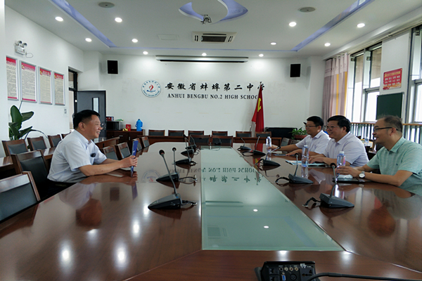 6月27日,党委委员、副校长李升和带队回访优质生源中学并调研指导招生宣传工作,受到蚌埠二中党委副书记林培的热情接待。