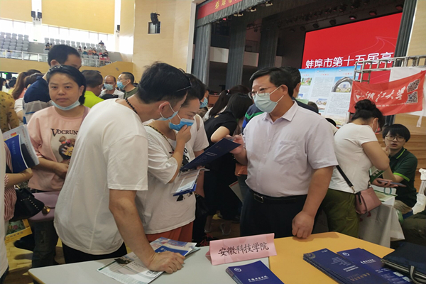 在蚌埠第十五届高校招生咨询会的现场,李升和还与学校负责宣传的老师一起,耐心为家长和考生介绍特色专业、招生计划、录取批次和报考注意事项,积极鼓励考生和家长填报我校志愿。他慰问并勉励招生宣传人员要不畏辛劳,结合每位考生具体情况解读好、宣传好学校的招生政策和专业特色,提供热情周到的报考指导服务,为学校争取更多优质生源。(特约通讯员:朱中军 审核:杜小明 编辑:张威)