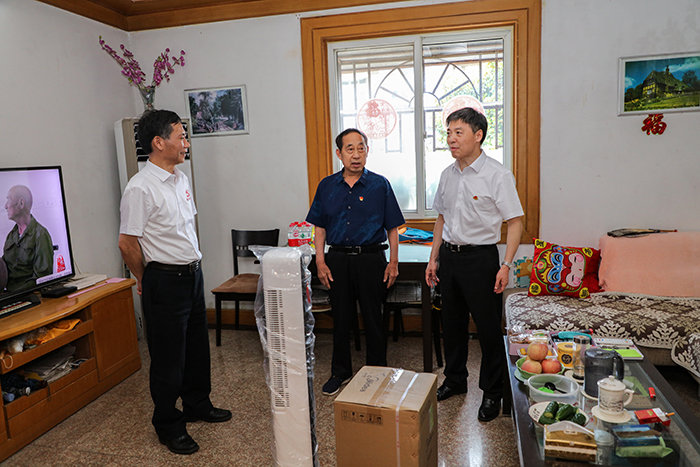 走访慰问中,蒋德勤一行与慰问对象亲切交谈,详细询问他们的工作、生活情况,并为行动不便的老同志颁发和佩戴“光荣在党50年”纪念章,感谢他们为学校事业发展作出的积极贡献,认真听取他们的意见建议和问题诉求。同时要求相关部门要结合党史学习教育“我为群众办实事”实践活动,积极关心关爱老党员、生活困难党员等,及时帮助解决实际困难,使基层党员师生充分感受到党的关心和温暖。