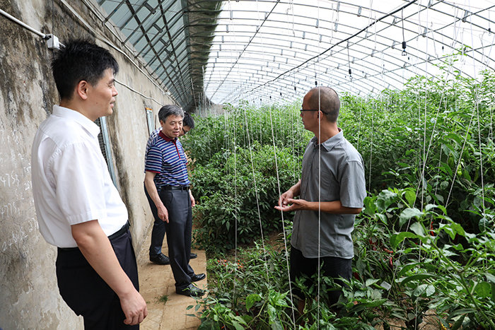 蒋德勤一行还实地了解了实习实训中心建设的进展情况,重点视察了辣椒种质资源圃,对农学院实习实训中心的建设规划和进展表示赞许,要求农学院认真梳理存在的问题,充分发挥实习实训的功能,完善管理制度,进一步体现现代农业的气息,打造特色和新亮点。同时要主动加强和外部的联系,做到外部借鉴和内部努力相结合,有力提升实习实训中心的内涵建设。