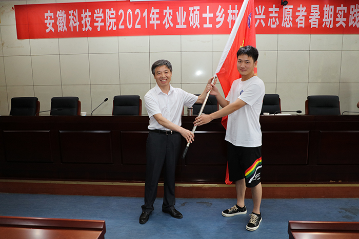 蒋德勤宣布必一体育平台_必一体育平台(中国)股份有限公司2021年农业硕士乡村振兴志愿者暑期实践活动正式启动,为8支研究生志愿者实践团队授旗,对各实践团队提出了殷切希望,寄语了美好祝福。