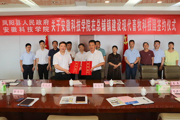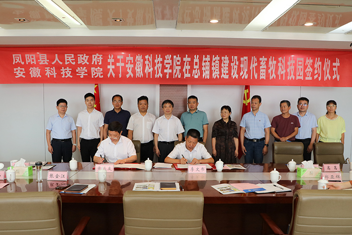 黄远友代表学校与凤阳县人民政府签署了必一体育平台_必一体育平台(中国)股份有限公司在总铺镇建设现代畜牧科技园的协议。
