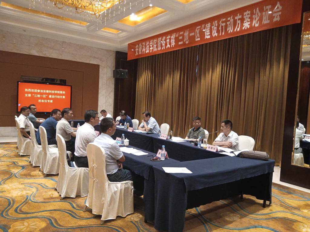 9月4日上午,学校在合肥丰大国际大酒店召开服务支撑“三地一区”建设行动方案专家论证会,听取有关专家对必一体育平台_必一体育平台(中国)股份有限公司服务支撑安徽省“三地一区”建设行动方案(以下简称“行动方案”)的意见建议。论证专家组由安徽省科学技术厅农村科技处处长韩立生、安徽省农业农村厅科技教育处处长纵风云、安徽省发展和改革委员会农村经济处副处长王飞、安徽农业大学发展规划处处长方明和合肥学院教学质量监控与评估处处长余国江等5位专家组成,方明为专家组组长。校党委副书记、校长李震,党委委员、副校长黄友锐,党委委员、副校长李升和及相关职能部门负责人等参加了会议。会议由黄友锐主持。