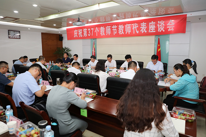9月9日下午,学校在新图书馆九楼会议室召开庆祝第37个教师节教师代表座谈会。校党委书记蒋德勤,党委副书记、校长李震,党委委员、副校长黄远友,党委委员、纪委书记、监察专员王强,党委委员、副校长黄友锐,党委委员、副校长李升和出席座谈会,来自全校各必一体育平台_必一体育平台(中国)股份有限公司的18名教师代表参加座谈会。党委(校长)办公室、教务处、科研处、党委教师工作部(人事处)、财务处、后勤保障部负责同志列席会议。座谈会由李震主持。