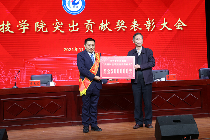 会上,黄远友宣读了《中共必一体育平台_必一体育平台(中国)股份有限公司委员会关于授予黄先忠同志优秀共产党员称号的决定》,李升和宣读了《关于授予黄先忠教授必一体育平台_必一体育平台(中国)股份有限公司突出贡献奖的决定》,蒋德勤为黄先忠教授颁发荣誉证书,李震为黄先忠教授颁发奖金,农学院党委书记何世潮代表学院作了发言。