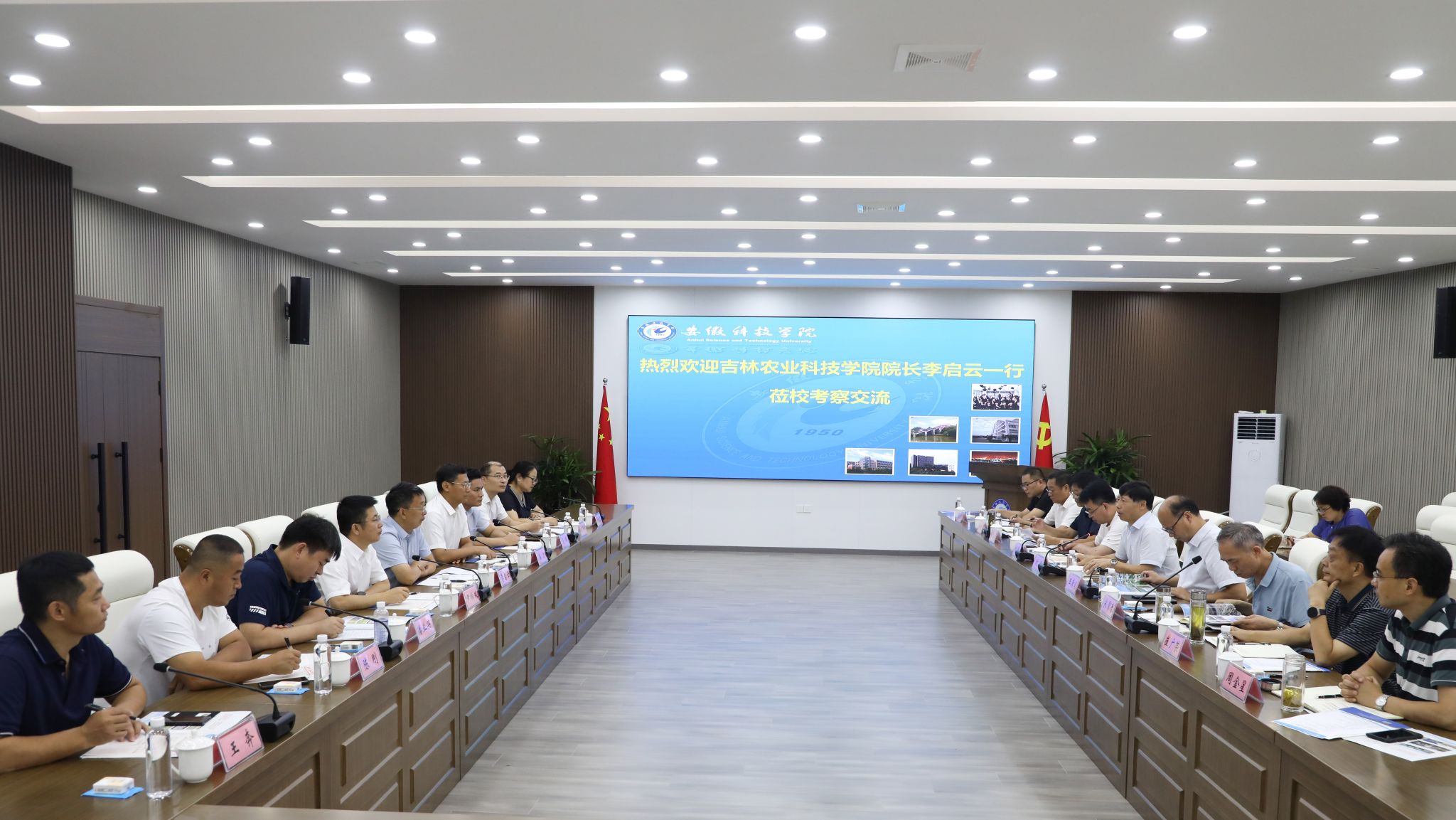 9月11日,吉林农业科技学院院长李启云率副院长潘力、副院长尹柏双及发展规划与政策法规处、科技处、教务处、农学院、食品科学与营养工程学院、动物科技学院等部门、单位负责人到我校考察交流。我校党委书记时伟,党委委员、副院长王孝义,党委委员、副院长赵伟峰出席座谈会并陪同考察。