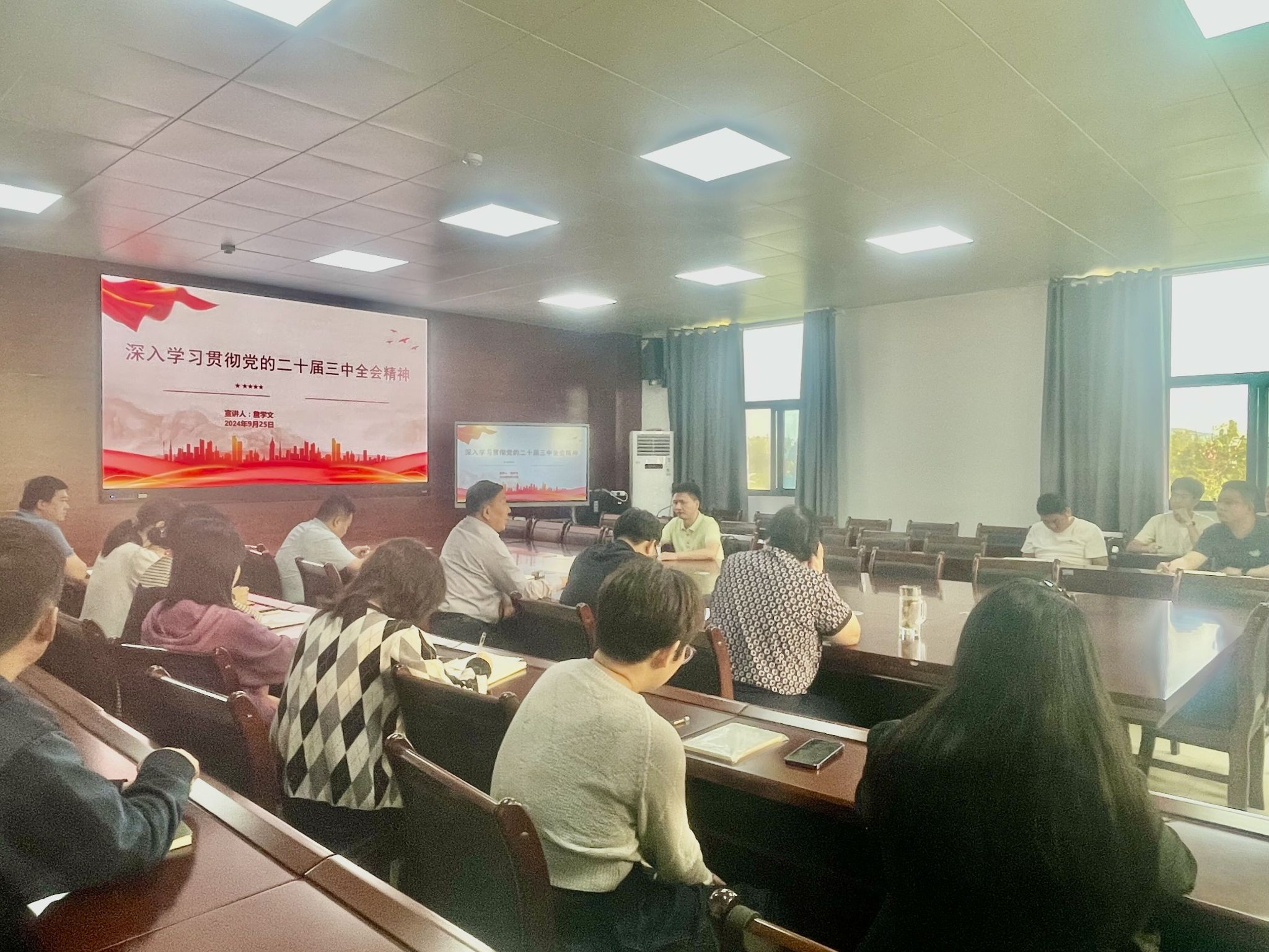 9月25日下午,校宣讲团成员,党委教师工作部部长、人事处处长詹学文深入建筑学院宣讲党的二十届三中全会精神,学院理论学习中心组成员、党支部书记、教研室主任、实验室主任及学生党员代表参会,会议由建筑学院院长张远兵主持。