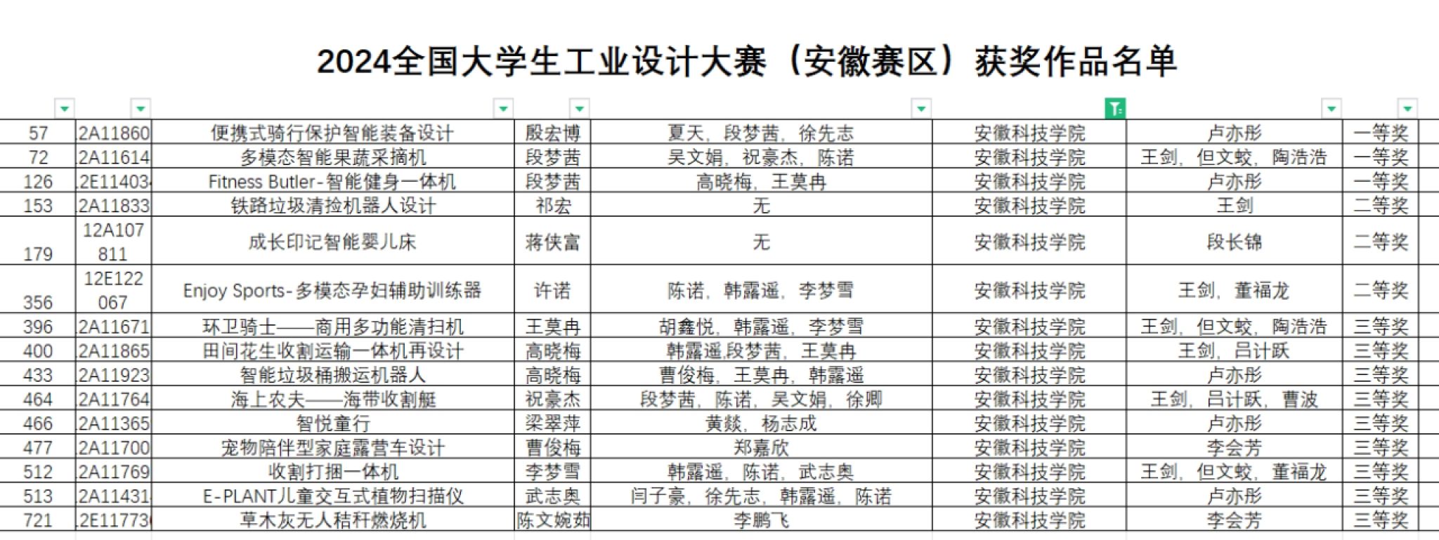 近日,由安徽省教育厅主办、安徽工业大学承办的2024全国大学生工业设计大赛(安徽赛区)(B类)评审获奖名单公布,我校工业设计专业在限额20项的情况下,荣获15项省级奖,其中省赛一等奖3项,二等奖3项,三等奖9项,获奖数量再创新高。我校王剑、卢亦彤老师荣获安徽赛区优秀指导教师。
