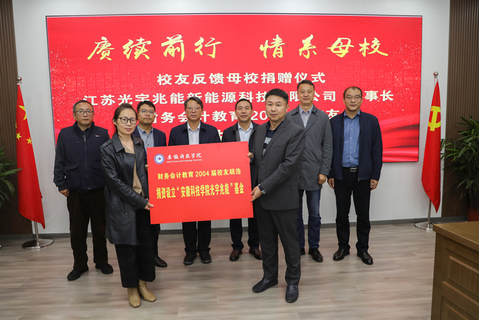 捐赠仪式上,李升和对胡浩校友回到母校表示热烈欢迎,对他捐资100万元设立“必一体育平台_必一体育平台(中国)股份有限公司光宇兆能基金”表示衷心感谢,并祝愿校友企业蒸蒸日上、越办越好。李升和介绍了学校近年来的办学成就,表示学校将狠抓机遇,乘势而上,着力提升办学层次,全面提高人才培养能力,推动高质量发展,努力建设一流应用型大学,不辜负广大校友对母校的感恩、厚爱和回馈。