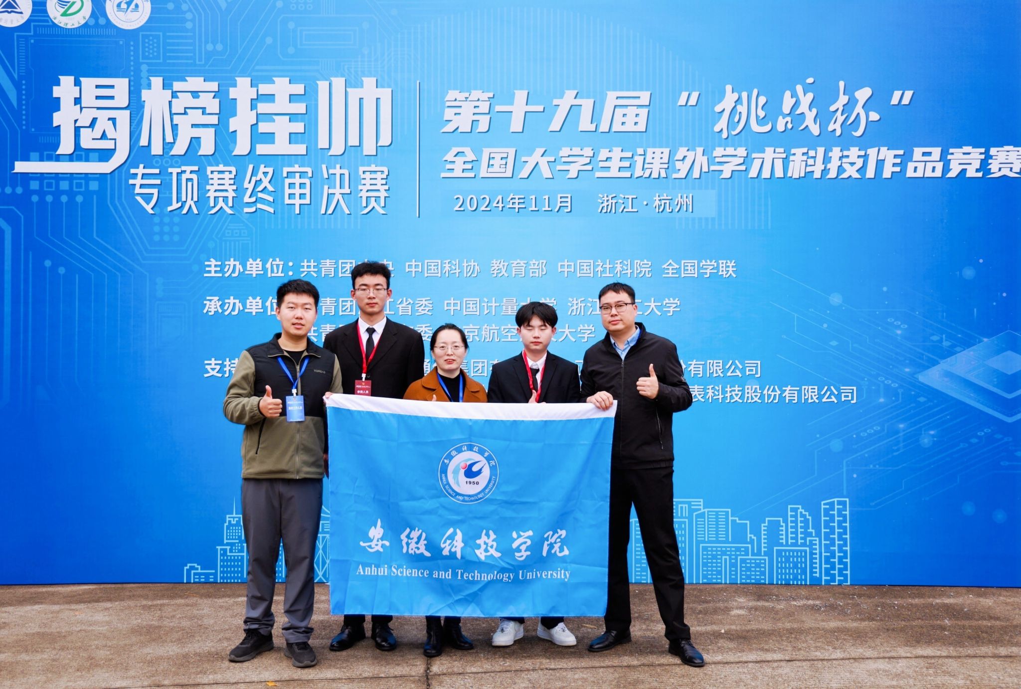 11月16日至17日,第十九届“挑战杯”全国大学生课外学术科技作品竞赛揭榜挂帅专项赛终审决赛在中国计量大学、浙江理工大学举行。由车传燕、李升和、任曼担任指导教师,刘文琦、余惠真、李晓康、王伟涛、赵浩等五位同学组队的《一种高效稳定的新型抗菌肽产品的研制及应用》项目斩获全国特等奖,这是我校该赛事参赛以来取得的最好成绩,实现了我校在全国大学生课外学术科技作品竞赛的历史突破。