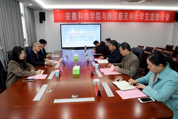 12月4日上午,韩国顺天乡大学副校长金龙夏率国际教育交流处处长柳炳旭和国际教育交流处副主任林丽明等来我校交流访问并会商中韩合作办学项目事宜。党委副书记、院长李升和及对口部门负责人热情接待了金龙夏一行。