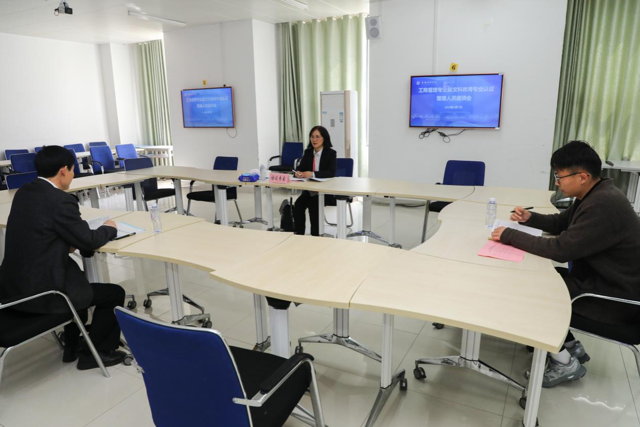 李升和对各位专家的到来表示热烈欢迎,介绍了学校的基本情况以及工商管理专业建设成效。陈业新介绍了专家组成员和此次新文科教育专业认证的目的、意义、考查的形式和工作重点。工商管理专业负责人程业炳汇报了专业基本情况和专业特色与优势。专家组结合认证标准就自评报告有关问题进行了现场提问,相关职能部门和学院负责人及专业负责人就专家组的提问进行了解答。
