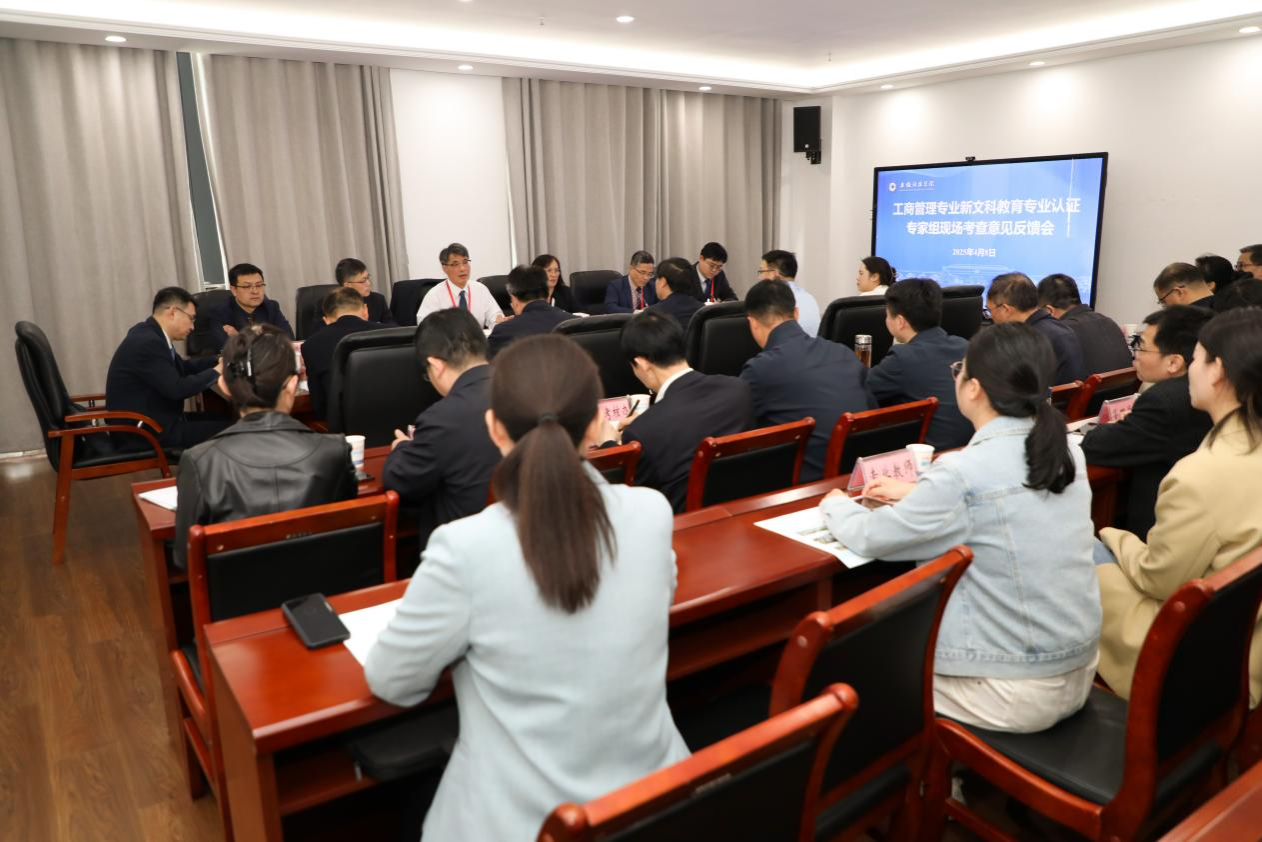 陈业新代表考查组反馈整体考查情况。专家组一致表示在现场考查阶段深刻感受到学校、学院领导对专业办学的重视,以及工商管理专业师生展现出良好的专业素养和精神风貌。专家组在充分肯定专业办学成效的同时,从培养目标达成度、课程体系支撑度、师资队伍匹配度等维度指出了专业建设中需要进一步改进的问题,并对专业建设中需要完善的关键环节提出了建设性意见和建议。