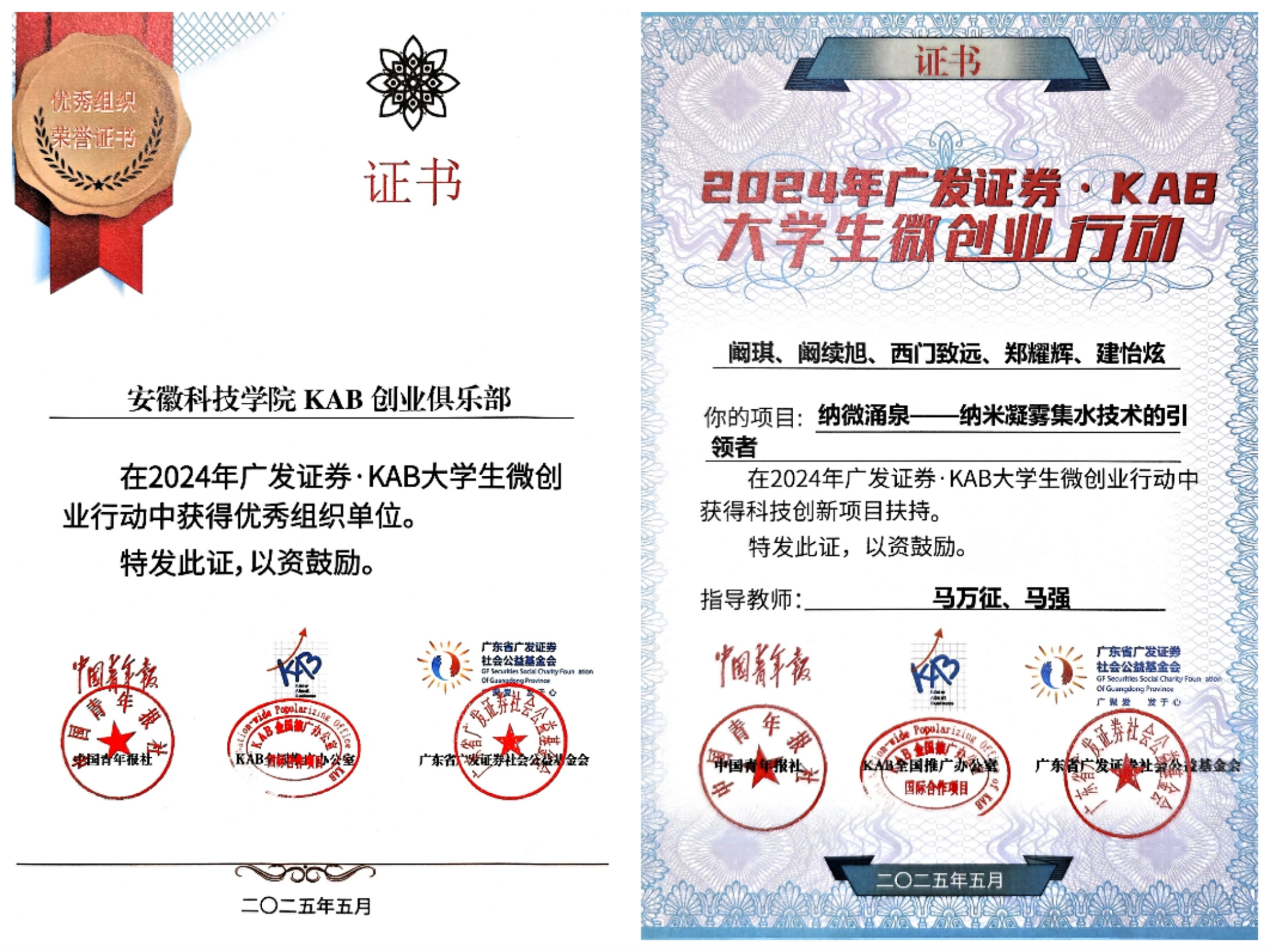 5月22日至23日,2025年全国KAB大学生微创业行动启动仪式暨2024年成果发布会在京举办。我校获评2024年全国KAB大学生微创业行动优秀组织单位(全国仅20所),本科生阚琪团队项目“纳微涌泉——纳米凝雾集水技术的引领者”成功入选2024年全国KAB大学生微创业行动科技创新项目扶持(全国仅10项),并获得专项落地资金扶持,这也是我校第二次获得该资金支持。