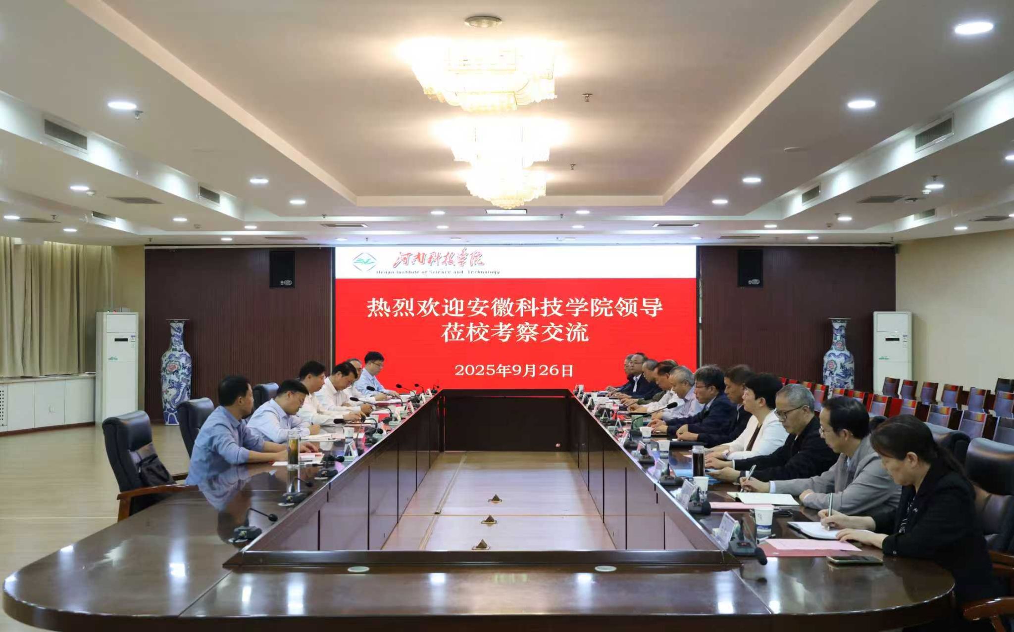 9月26-27日,党委书记时伟、院长李升和率党委(院长)办公室、发展规划处、教务处、科研处一行到河南科技学院考察交流工作。受到河南科技学院党委书记宋亚伟、院长阚云超、副院长乐玉忠及相关职能部门的热情接待,并进行了广泛深入交流。