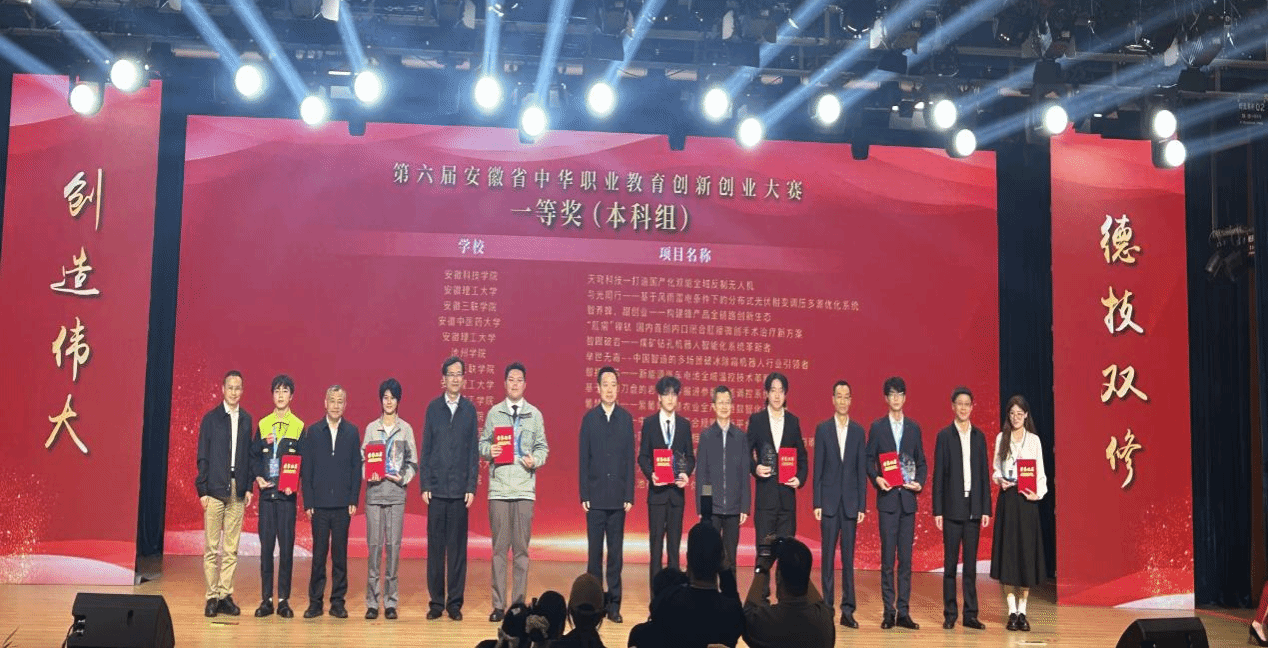 11月17日,第六届安徽省中华职业教育创新创业大赛省级总决赛在安徽滁州技师学院圆满落幕。我校参赛项目《天穹科技——打造国产化双能全域反制无人机》历经项目路演、现场答辩、专家评审等激烈比拼,凭借突出的创新价值与应用潜力,取得本科生组第一名的佳绩成功斩获省级一等奖。《神机妙彘——生猪智慧养殖装备行业领跑者》项目获得省级二等奖。