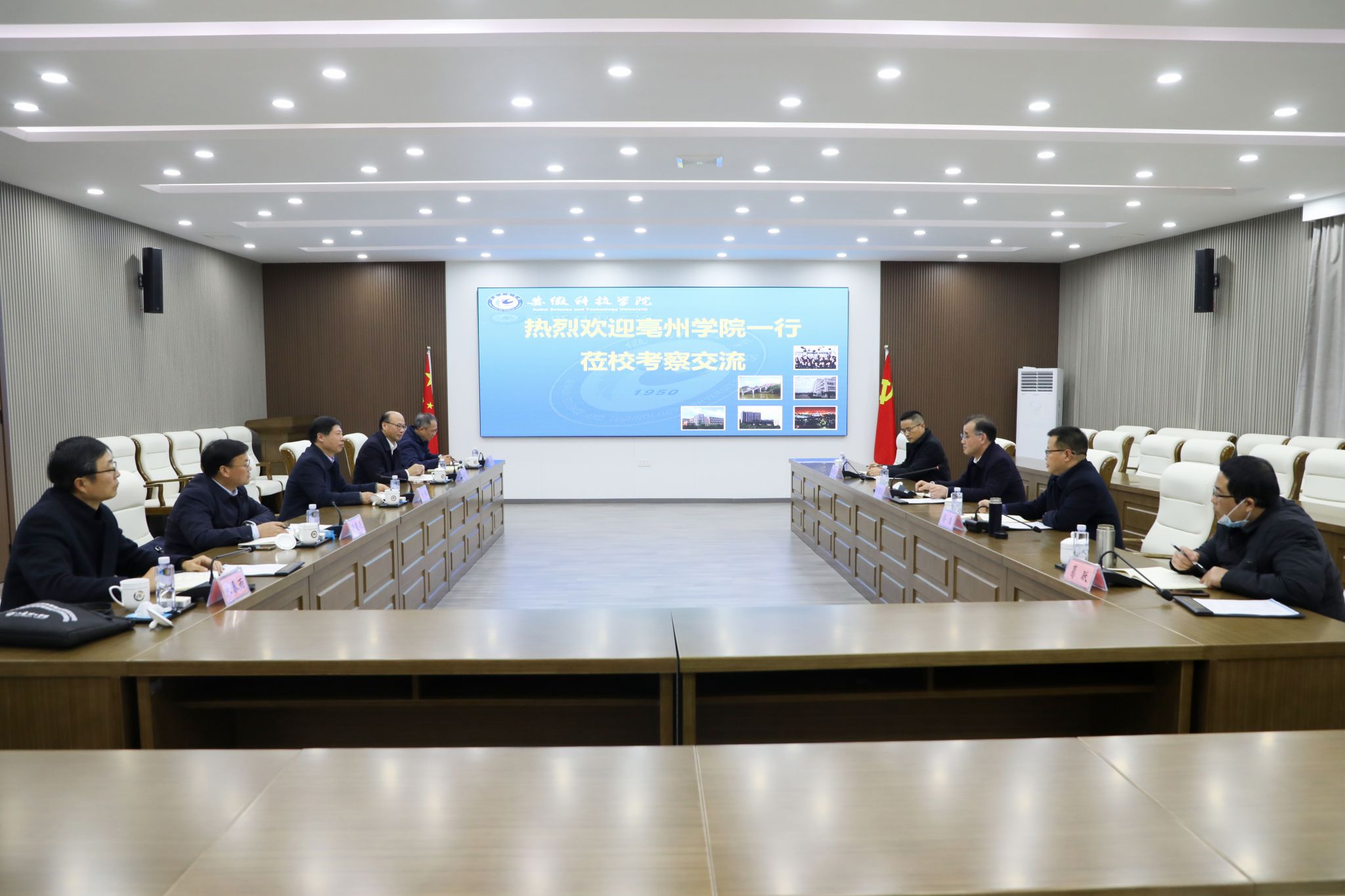 11月26日下午,亳州学院党委书记胡恩彪,党委副书记、院长俞浩率党政办公室、发展规划与科研处负责同志莅校考察交流。党委书记时伟,党委委员、副院长王孝义热情接待并出席座谈会。会议由王孝义主持。
