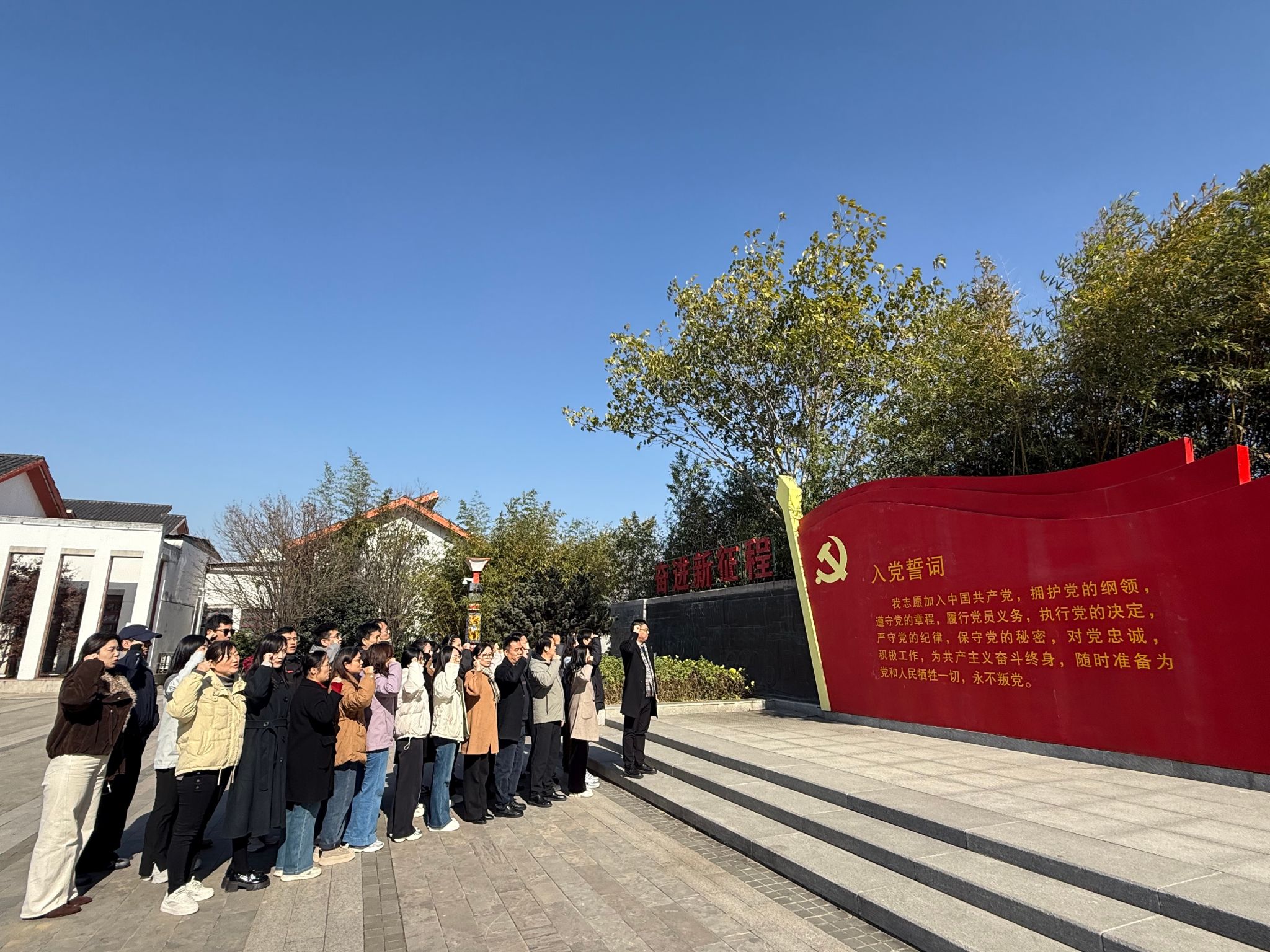 三个支部党员在“中国农村改革第一村”安徽省滁州市凤阳县小岗村集合,参观了小岗村村容村貌,亲身感受小岗村的巨变。全体党员走进沈浩同志先进事迹陈列馆,认真观看资料图片、倾听感人事迹,深刻体会沈浩同志“舍小家为大家”以及勇于担当、敢为人先的改革创新精神。全体党员在陈列馆广场面对党旗庄严宣誓,重温入党誓词,铭记初心使命。