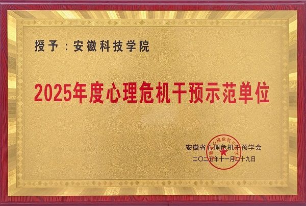 11月30日,安徽省心理危机干预学会2025学术年会在合肥召开。我校获评2025年度心理危机干预示范单位。