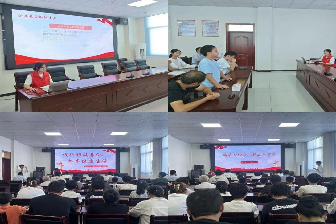 为践行移风易俗,引导村民树立文明健康的生活理念,在李庙村,学生开展了一场以“婚丧嫁娶,移风易俗”的主题宣讲会。在互动环节中,村民们踊跃发言,积极填写调查问卷,分享自己对当地婚丧习俗的感受,团队成员耐心回应,宣传“婚事新办,丧事简办,厚养薄葬”的文明理念,得到村民们的广泛认同。