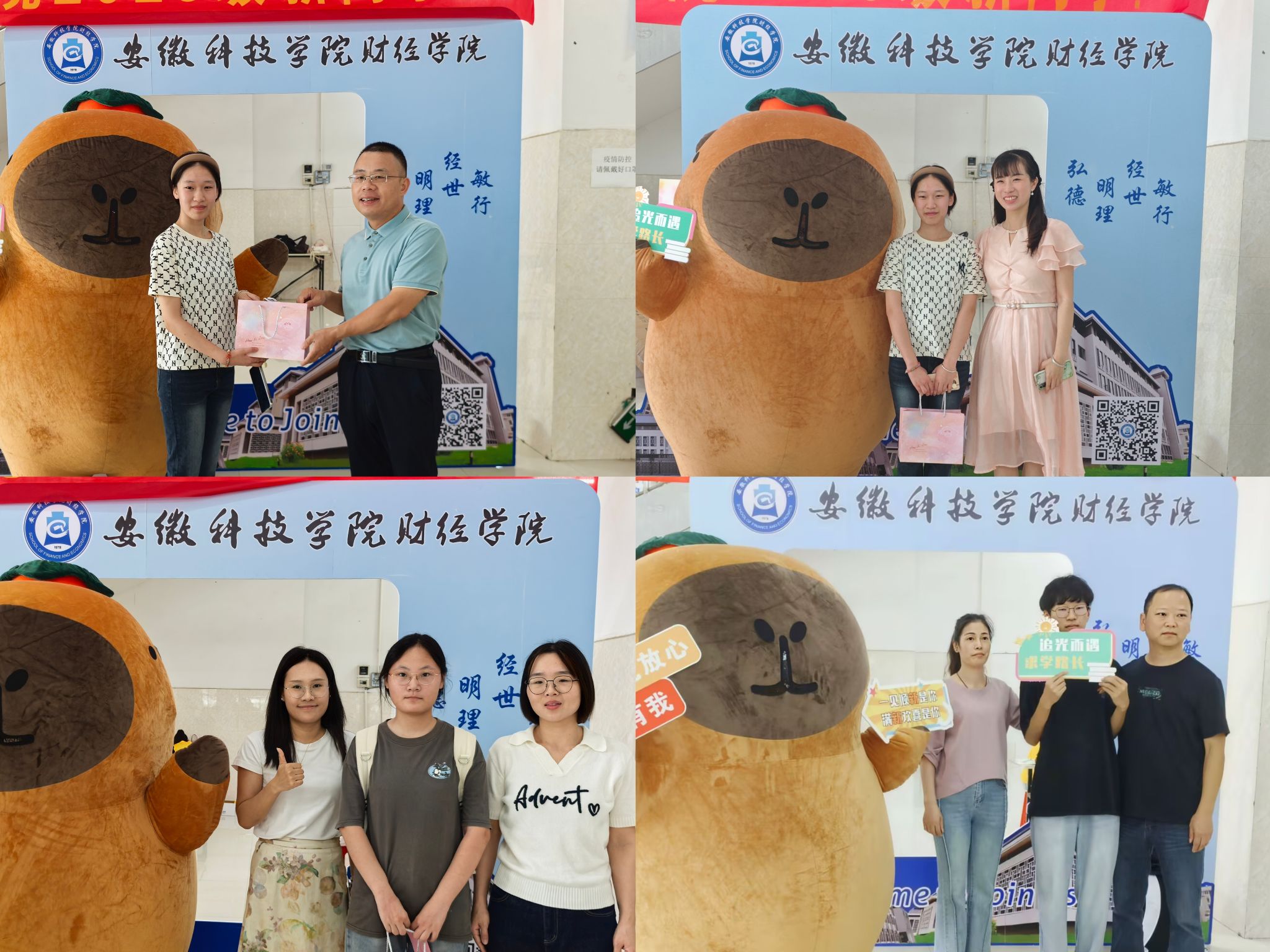 迎新现场,特色互动展板尽显财经文化魅力;传统与创意交融的扭扭花DIY活动,吸引新生驻足参与;吉祥物“卡皮吧啦” 穿梭其间,与新生欢乐互动,让迎新氛围轻松愉悦。新生深切体会到归属感与幸福感,学院的贴心服务赢得了新生及家长们的高度认可。