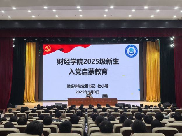 为加强新生思想政治引领,夯实理想信念根基,引导广大新生积极向党组织靠拢,9月9日晚,财经学院在东辅楼二楼报告厅举办2025级新生入党启蒙教育大会。学院党委书记杜小明担任主讲,学院新生辅导员及2025级全体新生参加。大会由学院党政办主任张俊主持。
