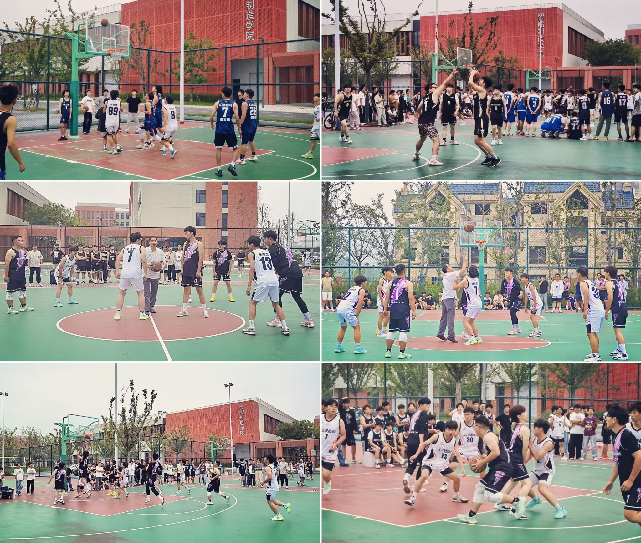 共6支队伍参加揭幕战。赛场上,各队队员攻防交错、你来我往,比分始终呈交替上升态势;抢断、快攻、盖帽等精彩瞬间接连上演,赢得场边观众阵阵喝彩。