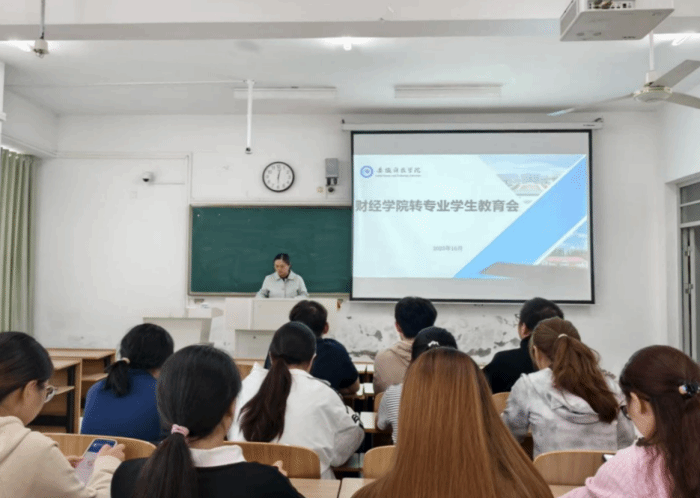 为帮助转专业学生快速适应新专业学习生活,明确学业发展方向,10月15日上午,财经学院在致知楼C208教室召开2025年转专业学生教育大会。会议由辅导员宣晶晶主持。