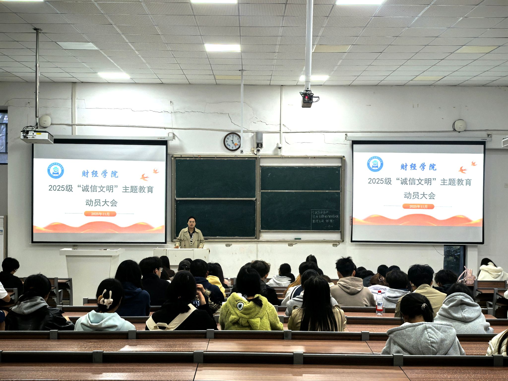 为深入培育和践行社会主义核心价值观,聚焦“诚信”“文明”核心素养培育,营造优良院风学风,11月17日下午,财经学院在致知楼C111教室召开“诚信文明”主题教育动员大会。学院团委书记薛枫、2025级全体班级干部参会,会议由学院副科级辅导员姚迪主持。
