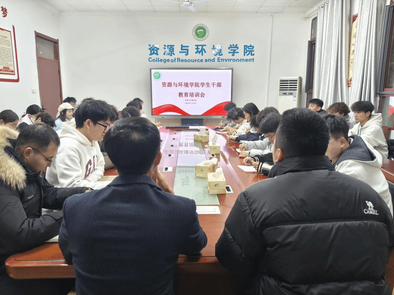 为全面提升学生干部的综合素质与履职能力,夯实学院学生工作高质量发展的人才基础,11月19日晚,资源与环境学院在学院会议室组织召开学生干部教育培训会议。学院党政办公室主任吴国良、学生会指导老师孙正浩、专职辅导员韩飞翔及学生会工作人员参加会议,会议由孙正浩主持。