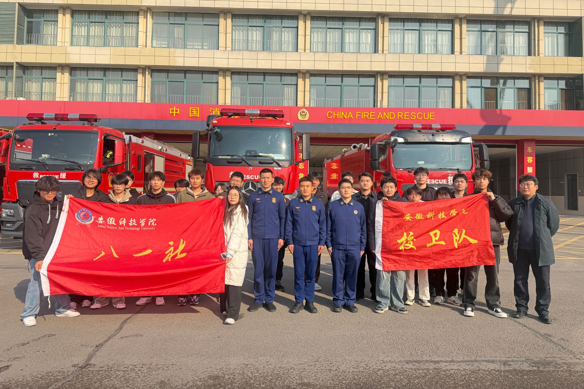 为进一步增强学生消防安全意识,广泛营造“全民消防生命至上——安全用火用电”浓厚氛围,11月21日上午,学校保卫处与凤阳、龙湖校区部分学生共同走进凤阳县消防救援局开展“零距离”消防安全学习体验活动。