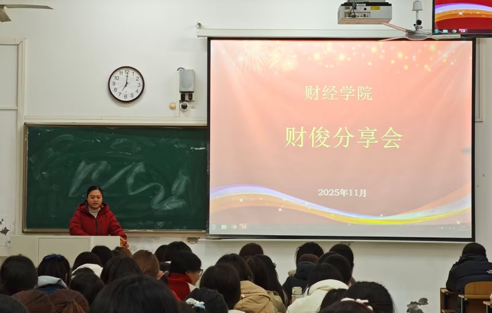 为进一步加强学院学风建设,充分发挥榜样引领示范作用,11月22日至24日,财经学院分专业举办三场“榜样赋能青春”财俊分享会。会议由专职辅导员宣晶晶主持,全体2025级新生参加。