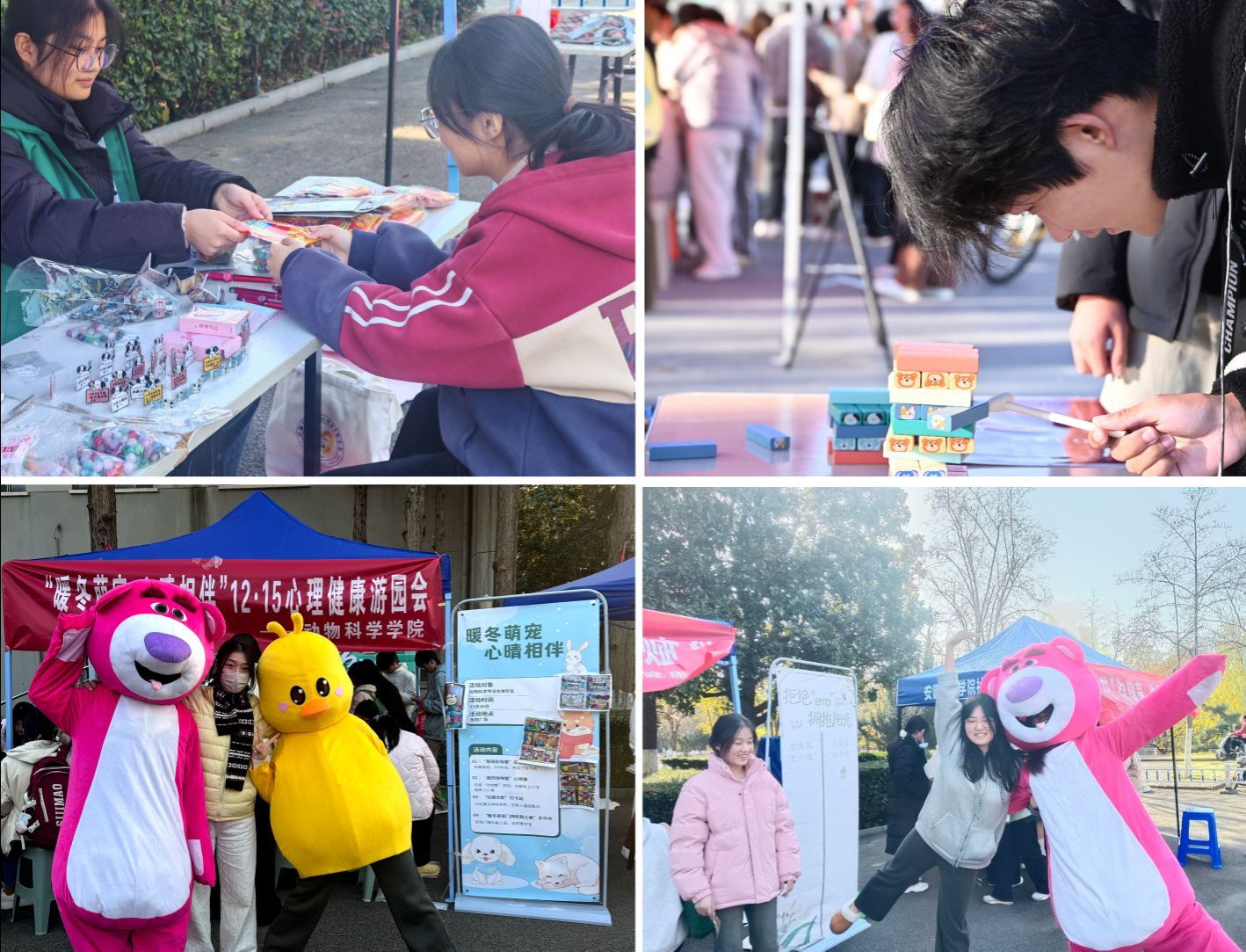 11月26日下午,第五届“12·15”大学生心理健康月系列活动之“一院一主题”心理游园会在三校区举办。