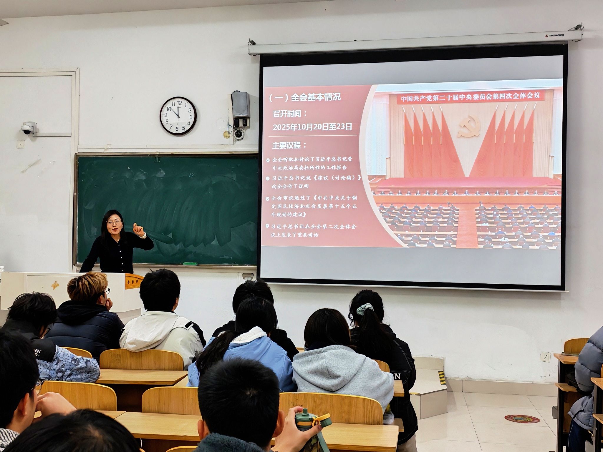 靳盼从“总体了解党的二十届四中全会的概况、深入领会党的二十届四中全会的重大意义、全面把握党的二十届四中全会的主要内容和挺膺担当新时代大学生的使命与责任”四个方面进行了深入阐释。她不仅系统梳理核心要点,更将宏观政策与青年成长紧密相连——把国家发展的“大方向”转化为青年奋斗的“小目标”,让理论不再是纸上文字,而是指引青春前行的“指南针”。她勉励各位入团积极分子和青马学员作为青年学子,要坚定理想信念、维护党中央权威。秉持新发展理念,主动聚焦“十五五”规划中关于建筑行业的建议,在专业学习中深耕细研,积极参与科创竞赛,发挥青年思维活跃的优势,为“中国制造”向“中国创造”转变注入青春动能。她强调学员们以更高的责任感和使命感将党的二十届四中全会精神融入日常学习和生活中,明确自身成长方向,切实做到学以增知、学以成才、学以立业、学以报国。要深刻理解习近平总书记对广大青年大学生的寄语,深刻认识自身肩负的历史使命和时代责任,将大会精神融入日常生活的每一个细节中,让党的二十届四中全会精神从“纸面上”走进“行动里”,做有理想、敢担当、能吃苦、肯奋斗的新时代好青年。(特约通讯员:武辉 摄影:范梦萍 陈步炜 审核:谢宜勤 傅友福 编辑:李锦)