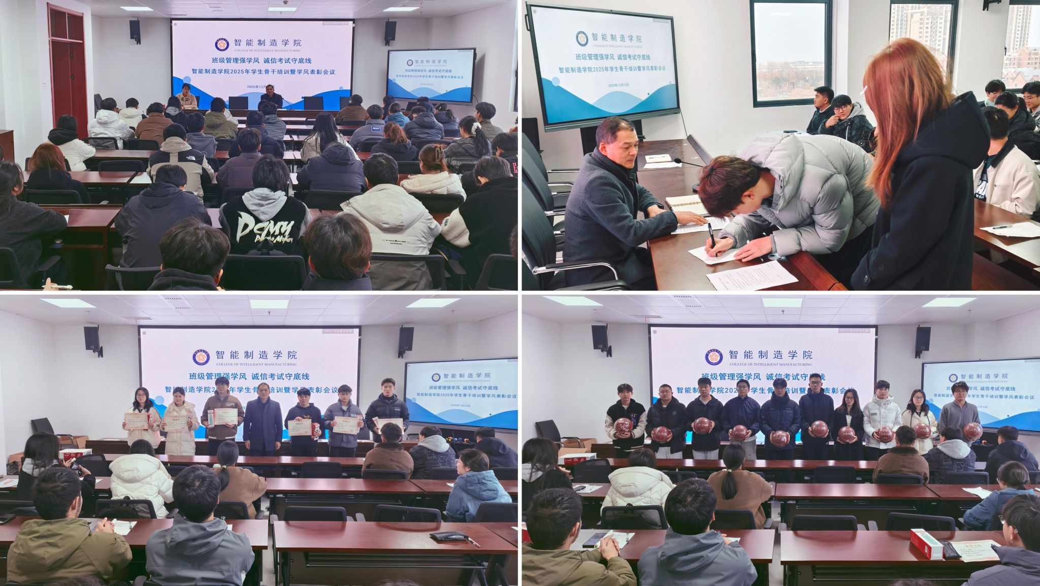 为强化班级管理效能,筑牢优良学风根基,严守诚信考试底线,12月10日下午,智能制造学院在学院518会议室召开学生骨干培训暨学风表彰会。学院党委副书记张程出席会议,学院有关教师、学生骨干,以及在学院“十佳大学生”评选、学习型班级与先进班集体创建、学生羽毛球团体赛中斩获佳绩的个人和集体代表参加会议。