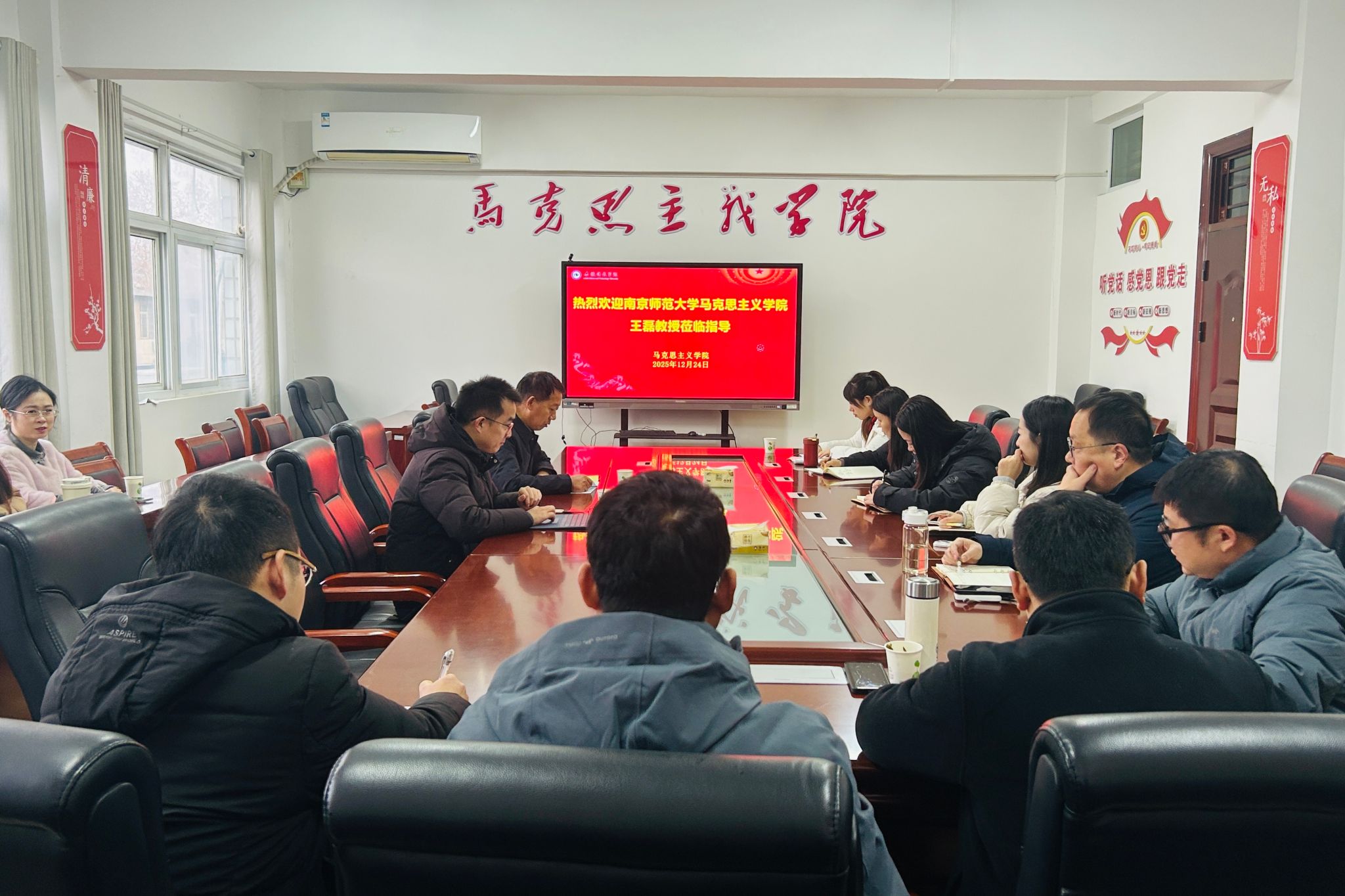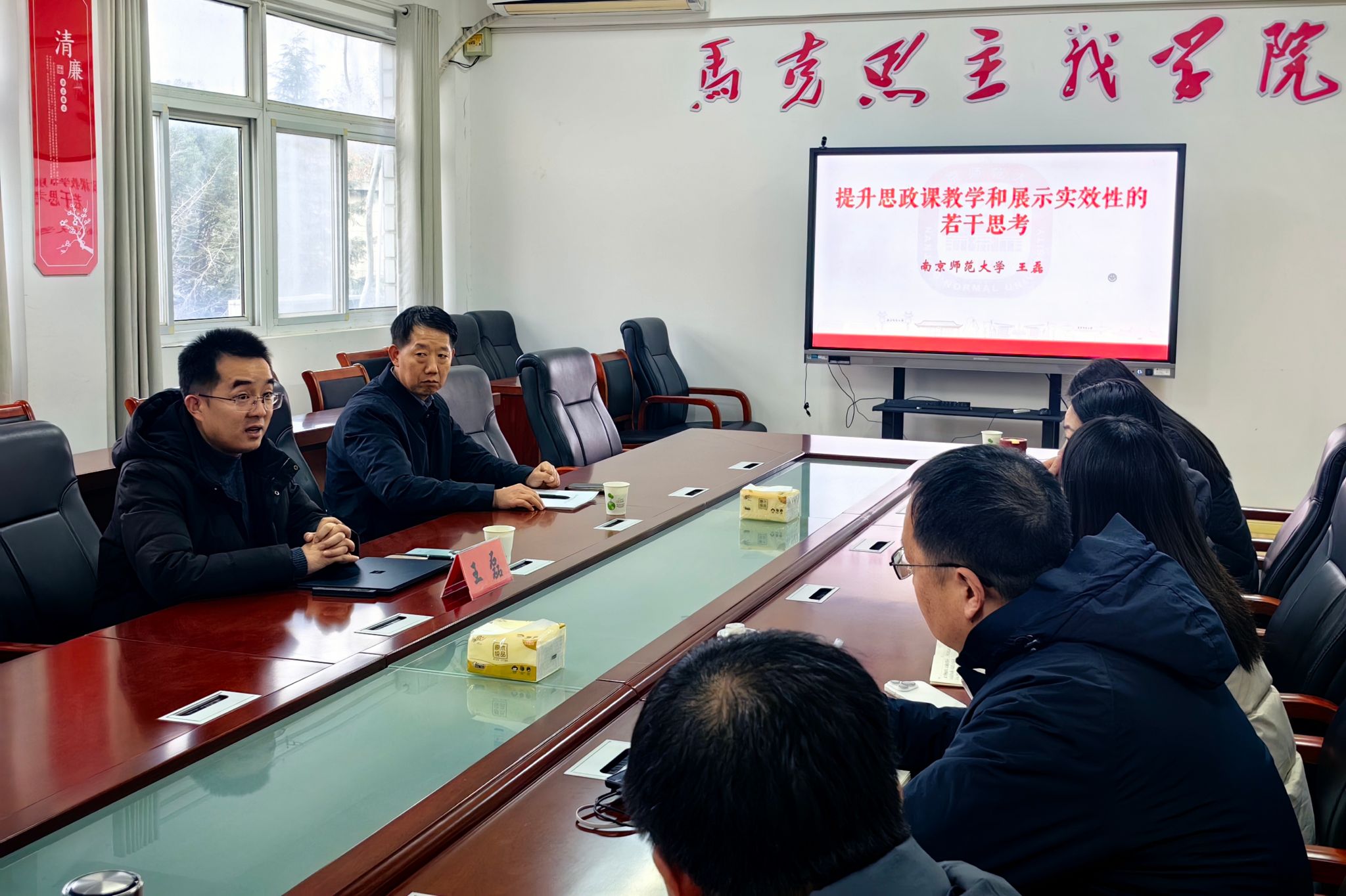 为深入贯彻落实立德树人根本任务,推动思想政治理论课教学与数字技术深度融合,提升教学实效性与创新性,12月24日,马克思主义学院举办智慧思政教学研讨会。南京师范大学马克思主义学院副院长王磊教授应邀莅临指导,学院中青年教师全员参与,院长张德化主持会议。
