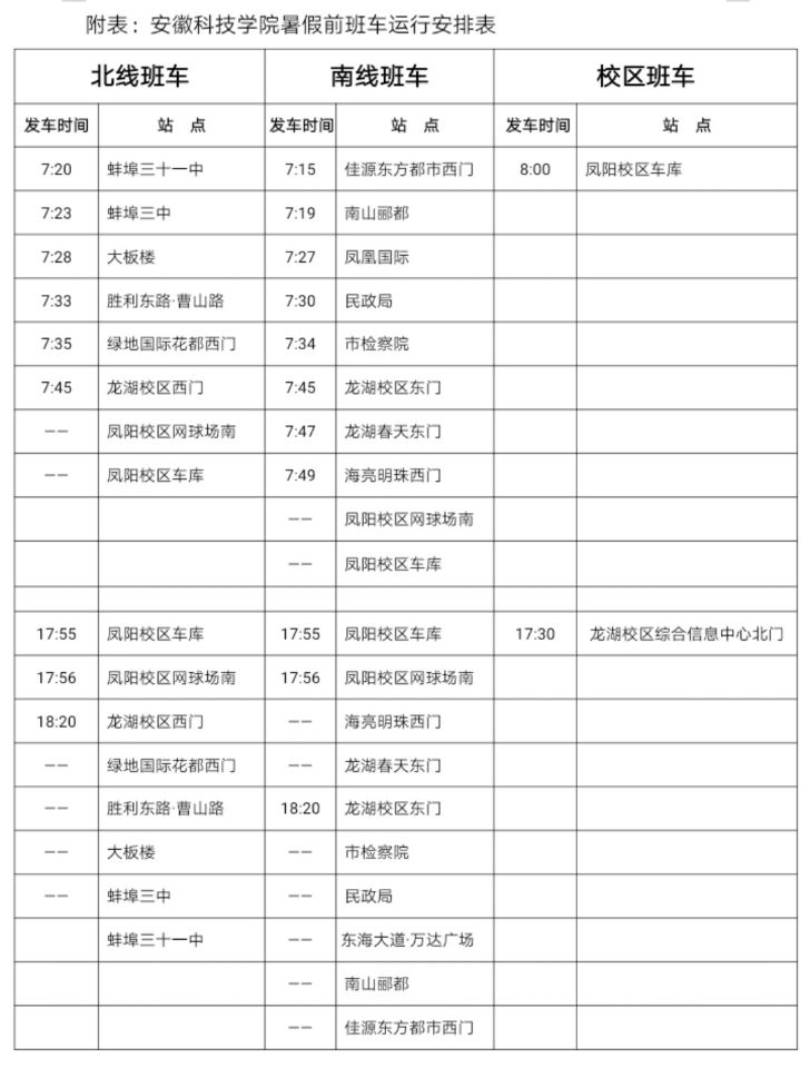 附表:必一体育平台_必一体育平台(中国)股份有限公司暑假前班车运行安排表